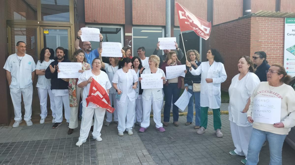 CCOO ha protagonizado una nueva concentración a las puertas del Hospital Campo Arañuelo de Navalmoral de la Mata exigiendo al SES un conjunto de medidas urgentes para dar solución a los problemas en las condiciones laborales que sufren los celadores y celadoras de este hospital.